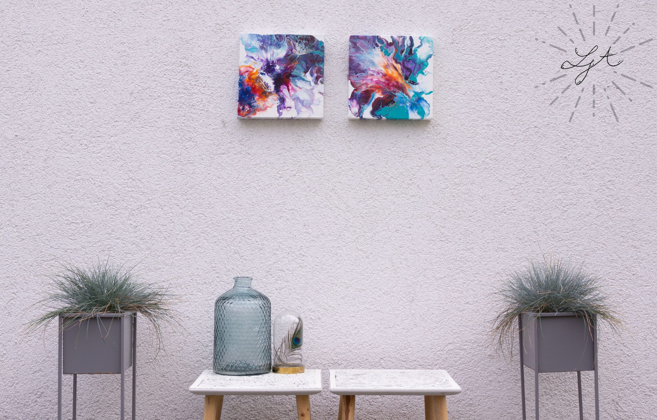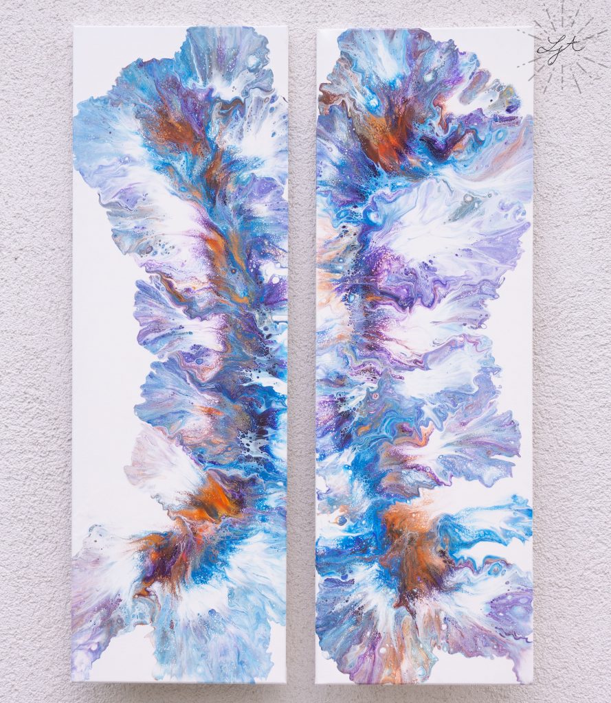 Inspiriert durch die Farbenpracht und das Zusammenspiel der Natur lasse ich meiner Kreativität freien Lauf und schaffe mir einen Gegenpol vom Alltag, indem ich mit Acrylfarbe und anderen Materialien experimentiere und versuche, bestimmte Momente und Eindrücke auf Leinwänden festzuhalten. Meine momentan favorisierte Technik ist die Gießtechnik, bei der verflüssigte Farben durch verschiedenste Arbeitsschritte miteinander verschmelzen und so einzigartige und kraftvolle Ergebnisse auf der Leinwand entstehen. Der besondere Reiz daran ist, dass man trotz einer anfänglichen Vision immer wieder vom Zusammenspiel der Farben überrascht wird und das finale Werk und der Ausdruck nie wirklich konkret planbar sind und so immer wieder wunderbare Unikate gestaltet werden, die bei jedem Menschen Unterschiedliches hervorrufen, wenn sie sie betrachten.